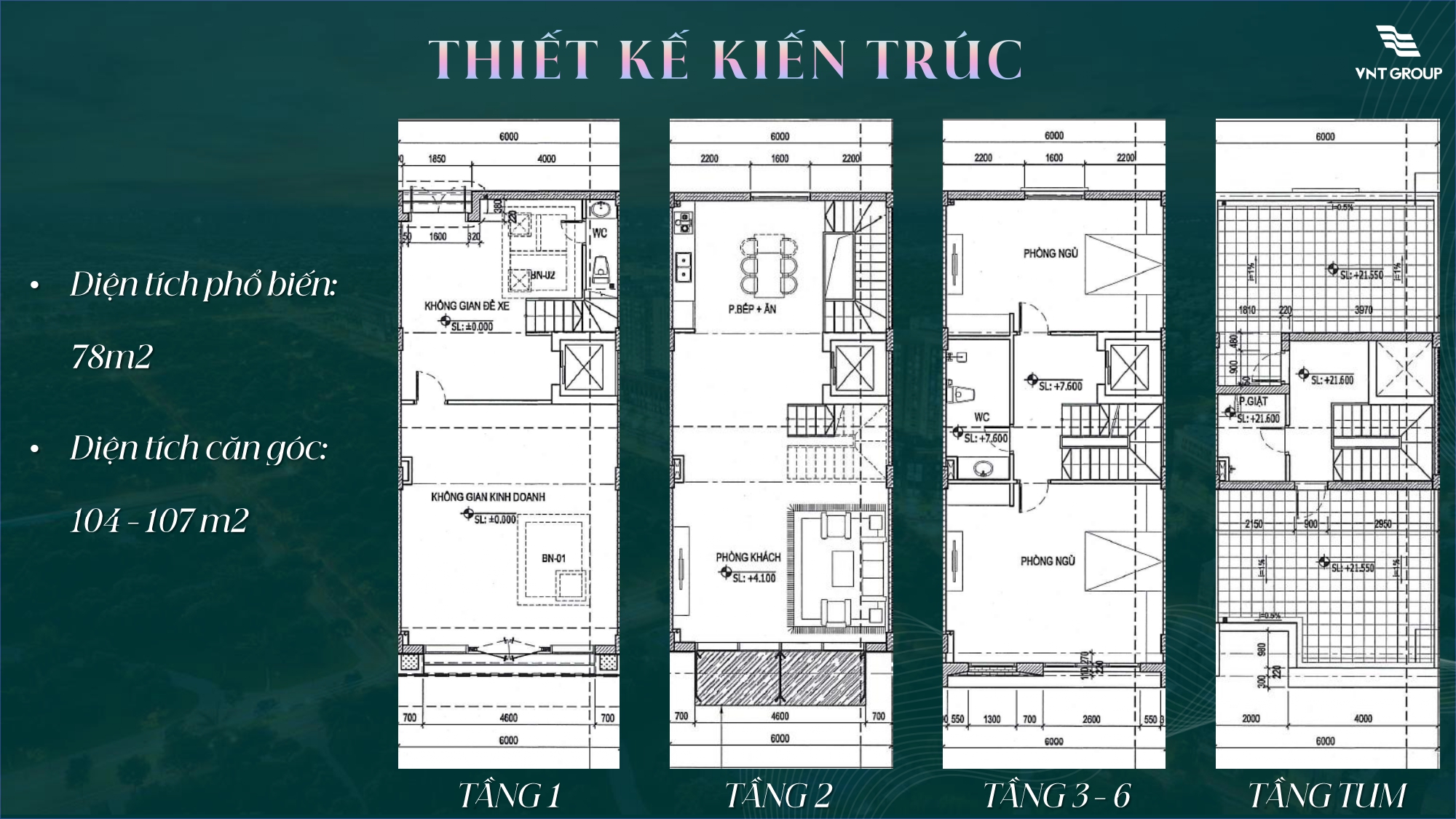 + Diện tích dự kiến: 78m2 – 129m2